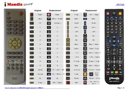 This remote control fully replaces your KKY304 and offers all the functions of the original.