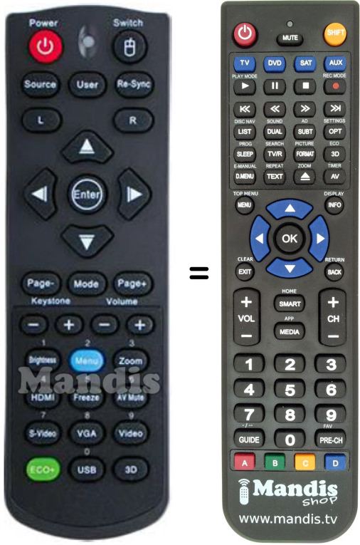 This remote control fully replaces your Optoma005 and offers all the functions of the original.