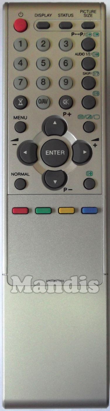 Power, Display, Status, Picture Sze, 1, 2, 3, 4, 5, 6, 7, 8, 9, 0 / AV, Timer, Mute, P<-->P, Audio 1 / 2, Skip, [=+], Menu, [=] / [ /=] / [ ], Up / P +, Down / P -, Left / Vol -, Right / Vol +, Enter, Normal, [=+], Red, Green, Yellow, Blue