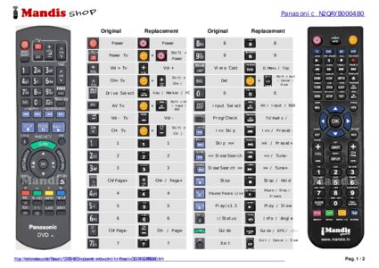 This remote control fully replaces your DVD IR6 (N2QAYB000480) and offers all the functions of the original.