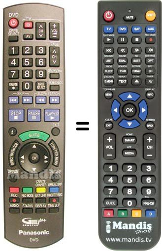 Below, we will show you the correspondence between each button on the original remote control and the button that performs the same function on the replacement remote control. In some cases, you may need to press the SHIFT key before pressing another button to perform certain actions. These additional functions are often not widely used and are included to facilitate understanding of the replacement remote control, or because the original remote control has more buttons than its equivalent.