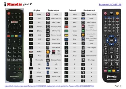 This remote control fully replaces your RCA49128 (30092557) and offers all the functions of the original.