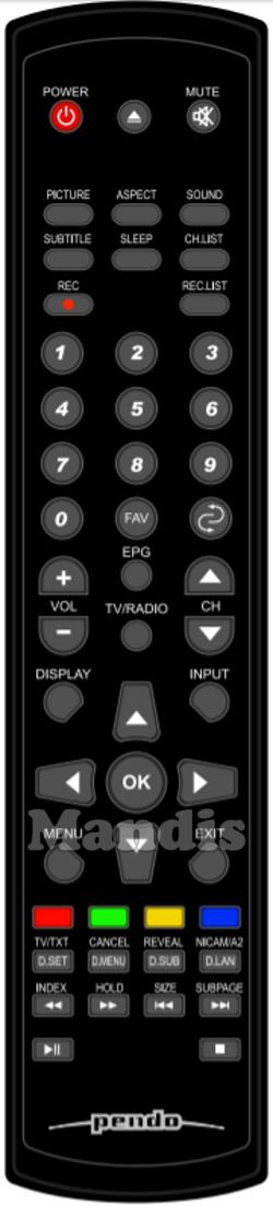 original remote control PNDLHTU20 used for televisions for the brand Pendo. This is an original remote control.