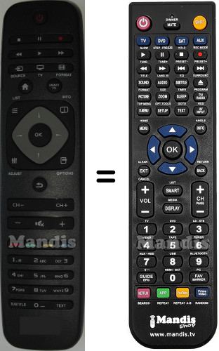 Below, we will show you the correspondence between each button on the original remote control and the button that performs the same function on the replacement remote control. In some cases, you may need to press the SHIFT key before pressing another button to perform certain actions. These additional functions are often not widely used and are included to facilitate understanding of the replacement remote control, or because the original remote control has more buttons than its equivalent.
