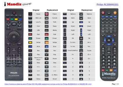 Below, we will show you the correspondence between each button on the original remote control and the button that performs the same function on the replacement remote control. In some cases, you may need to press the SHIFT key before pressing another button to perform certain actions. These additional functions are often not widely used and are included to facilitate understanding of the replacement remote control, or because the original remote control has more buttons than its equivalent.