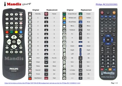 This remote control fully replaces your RC1123333/01 (862266712101) and offers all the functions of the original.