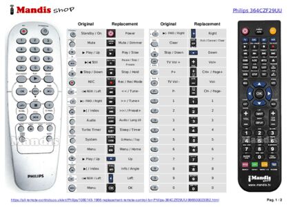 Below, we will show you the correspondence between each button on the original remote control and the button that performs the same function on the replacement remote control. In some cases, you may need to press the SHIFT key before pressing another button to perform certain actions. These additional functions are often not widely used and are included to facilitate understanding of the replacement remote control, or because the original remote control has more buttons than its equivalent.