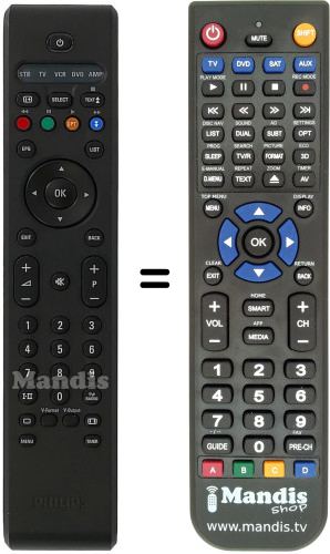 Below, we will show you the correspondence between each button on the original remote control and the button that performs the same function on the replacement remote control. In some cases, you may need to press the SHIFT key before pressing another button to perform certain actions. These additional functions are often not widely used and are included to facilitate understanding of the replacement remote control, or because the original remote control has more buttons than its equivalent.