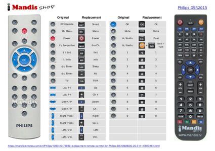 Below, we will show you the correspondence between each button on the original remote control and the button that performs the same function on the replacement remote control. In some cases, you may need to press the SHIFT key before pressing another button to perform certain actions. These additional functions are often not widely used and are included to facilitate understanding of the replacement remote control, or because the original remote control has more buttons than its equivalent.