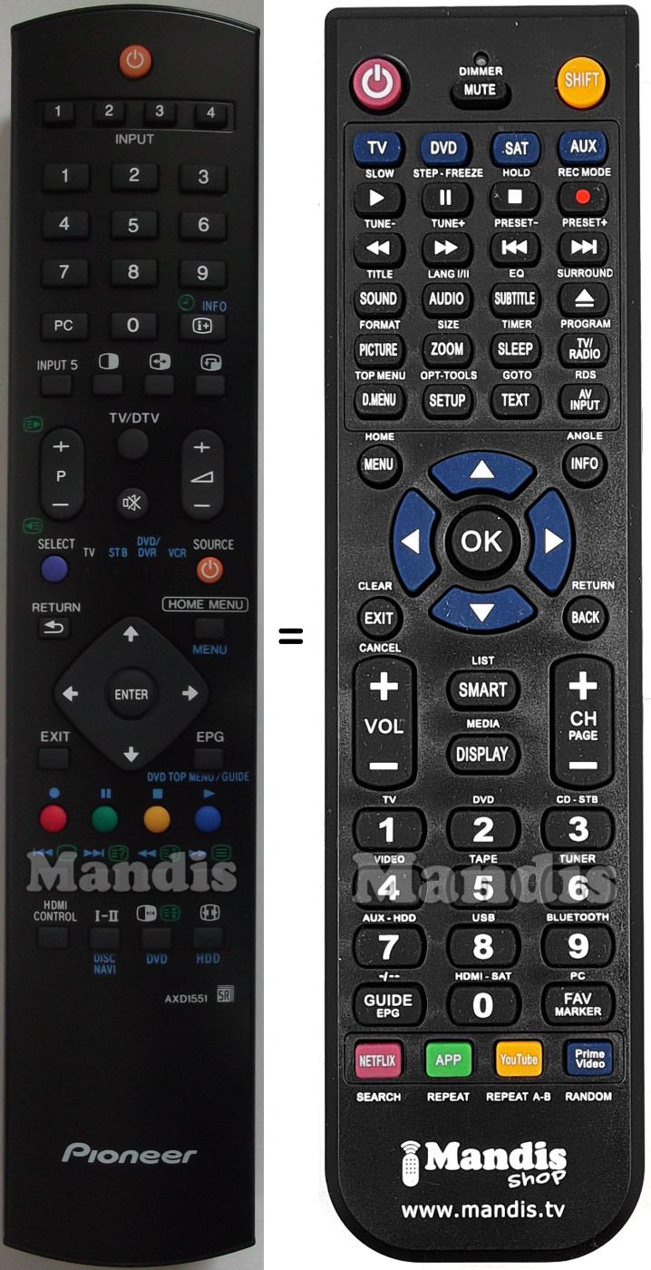 This remote control fully replaces your AXD1551$J and offers all the functions of the original.
