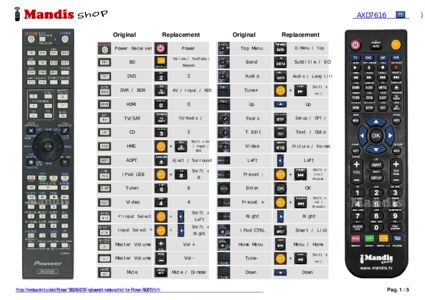 This remote control fully replaces your AXD7616 and offers all the functions of the original.
