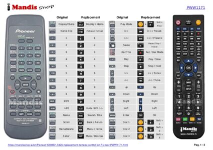 Below, we will show you the correspondence between each button on the original remote control and the button that performs the same function on the replacement remote control. In some cases, you may need to press the SHIFT key before pressing another button to perform certain actions. These additional functions are often not widely used and are included to facilitate understanding of the replacement remote control, or because the original remote control has more buttons than its equivalent.