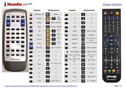 Remote control for PIONEER XXD3034