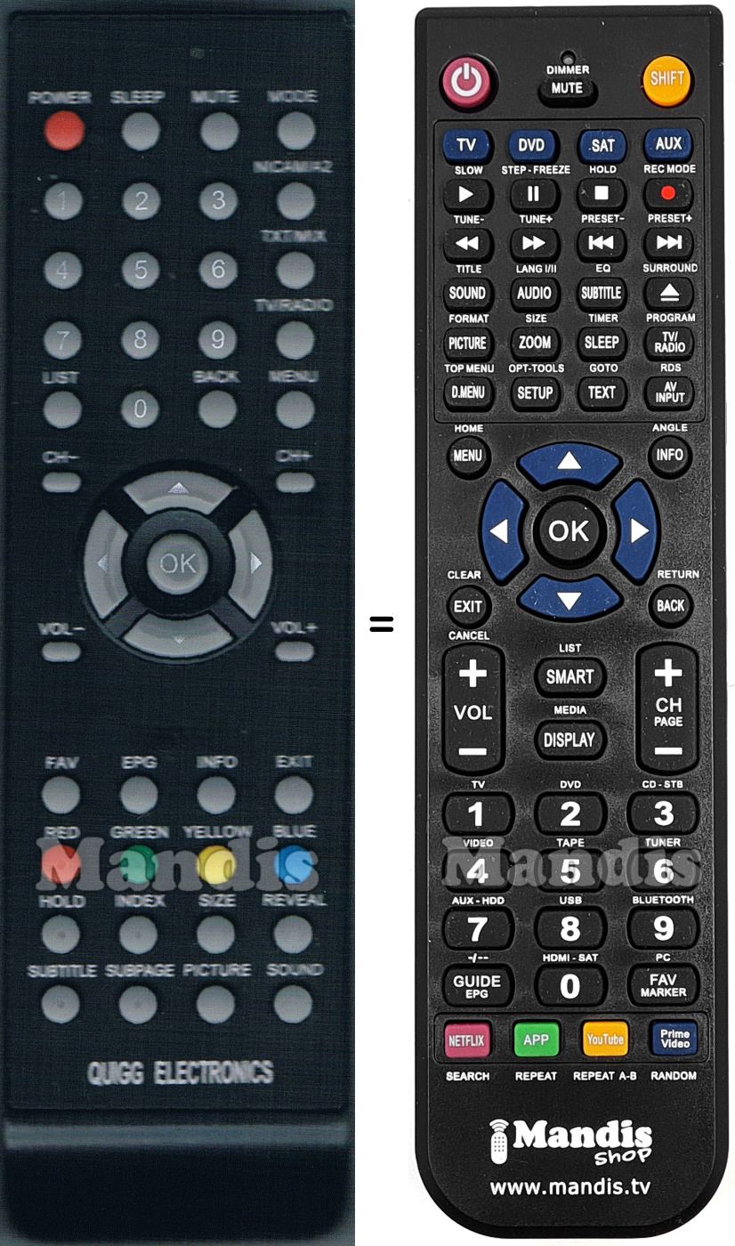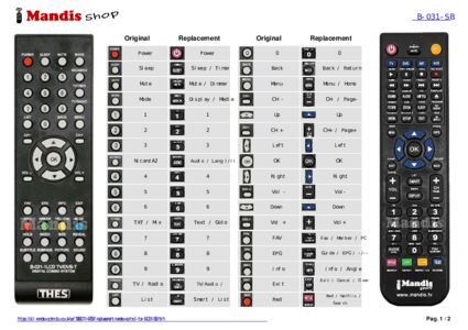 Below, we will show you the correspondence between each button on the original remote control and the button that performs the same function on the replacement remote control. In some cases, you may need to press the SHIFT key before pressing another button to perform certain actions. These additional functions are often not widely used and are included to facilitate understanding of the replacement remote control, or because the original remote control has more buttons than its equivalent.