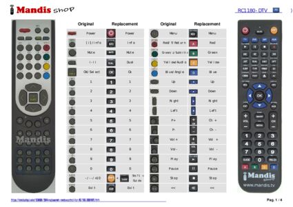 A document is included to help you use the new remote control easily, showing the button correspondence.