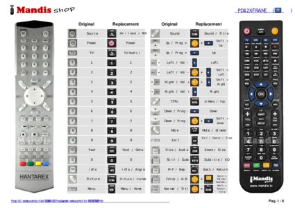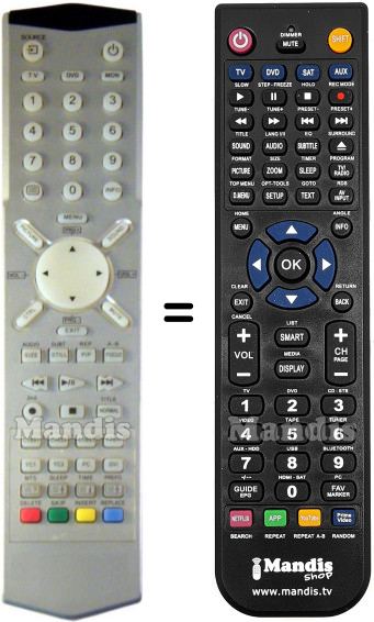 Below, we will show you the correspondence between each button on the original remote control and the button that performs the same function on the replacement remote control. In some cases, you may need to press the SHIFT key before pressing another button to perform certain actions. These additional functions are often not widely used and are included to facilitate understanding of the replacement remote control, or because the original remote control has more buttons than its equivalent.