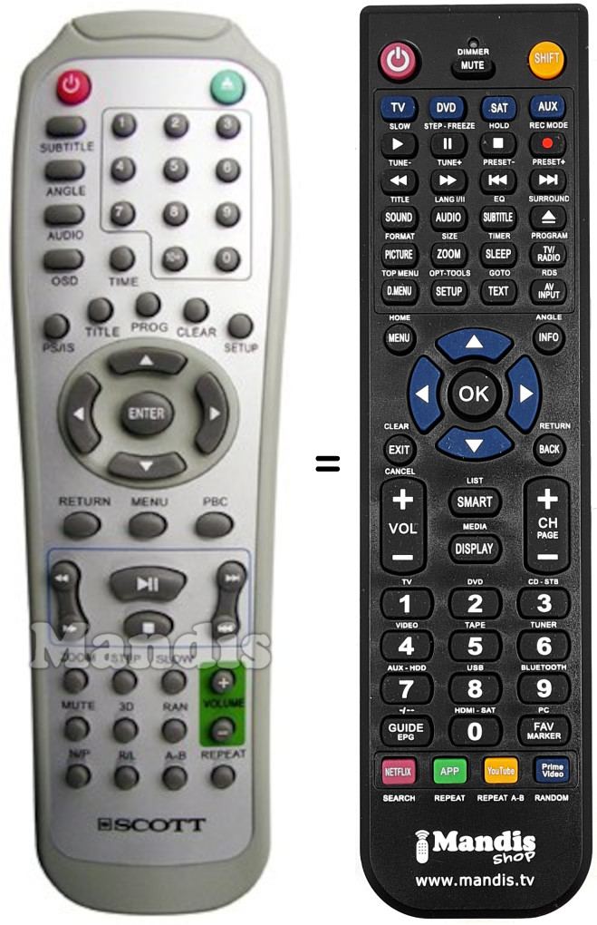 Remote control to replace the original and all its functions.