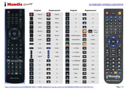 This remote control fully replaces your SFERE 2219 DVD PVR and offers all the functions of the original.