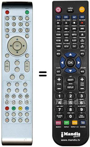 Below, we will show you the correspondence between each button on the original remote control and the button that performs the same function on the replacement remote control. In some cases, you may need to press the SHIFT key before pressing another button to perform certain actions. These additional functions are often not widely used and are included to facilitate understanding of the replacement remote control, or because the original remote control has more buttons than its equivalent.