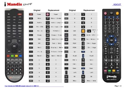This remote control fully replaces your HD450T and offers all the functions of the original.