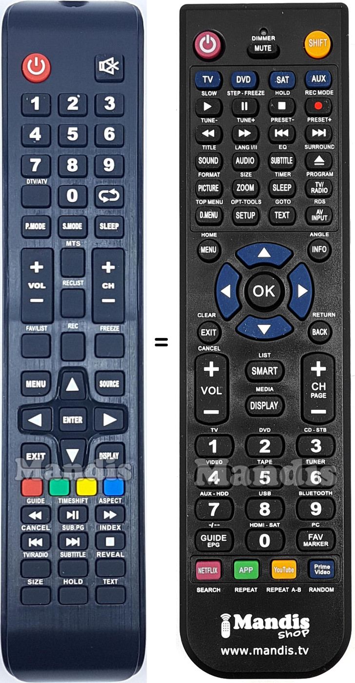Below, we will show you the correspondence between each button on the original remote control and the button that performs the same function on the replacement remote control. In some cases, you may need to press the SHIFT key before pressing another button to perform certain actions. These additional functions are often not widely used and are included to facilitate understanding of the replacement remote control, or because the original remote control has more buttons than its equivalent.