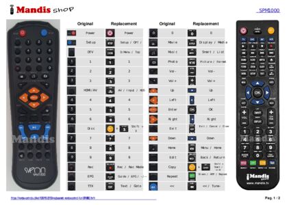 Below, we will show you the correspondence between each button on the original remote control and the button that performs the same function on the replacement remote control. In some cases, you may need to press the SHIFT key before pressing another button to perform certain actions. These additional functions are often not widely used and are included to facilitate understanding of the replacement remote control, or because the original remote control has more buttons than its equivalent.