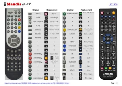 A document is included to help you use the new remote control easily, showing the button correspondence.
