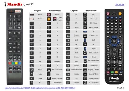 Below, we will show you the correspondence between each button on the original remote control and the button that performs the same function on the replacement remote control. In some cases, you may need to press the SHIFT key before pressing another button to perform certain actions. These additional functions are often not widely used and are included to facilitate understanding of the replacement remote control, or because the original remote control has more buttons than its equivalent.