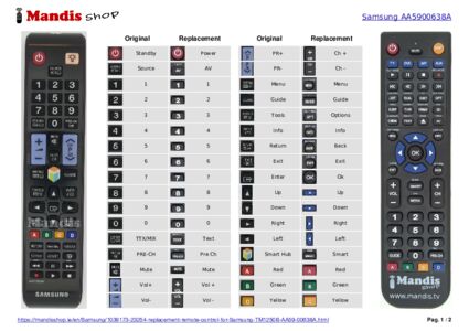 This remote control fully replaces your TM1250B (AA59-00638A) and offers all the functions of the original.