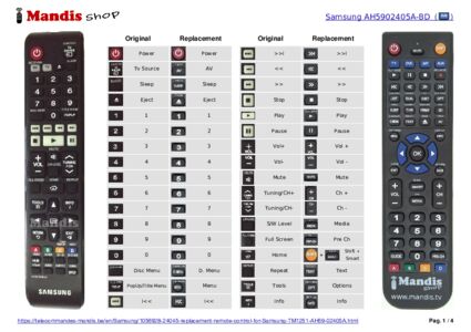 Below, we will show you the correspondence between each button on the original remote control and the button that performs the same function on the replacement remote control. In some cases, you may need to press the SHIFT key before pressing another button to perform certain actions. These additional functions are often not widely used and are included to facilitate understanding of the replacement remote control, or because the original remote control has more buttons than its equivalent.