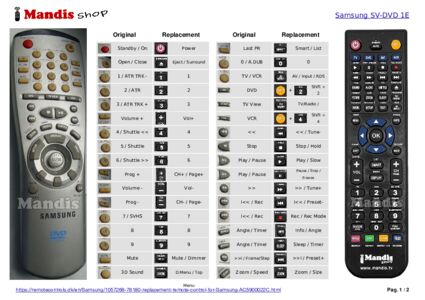 Below, we will show you the correspondence between each button on the original remote control and the button that performs the same function on the replacement remote control. In some cases, you may need to press the SHIFT key before pressing another button to perform certain actions. These additional functions are often not widely used and are included to facilitate understanding of the replacement remote control, or because the original remote control has more buttons than its equivalent.
