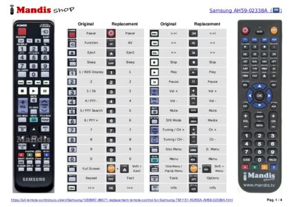 Attention: This remote control replaces most of the functions of your TM1151 KOREA (AH59-02338A), but not all. The main functions are included, but some secondary functions may not be available.