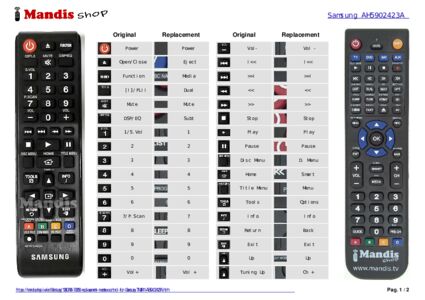A document is included to help you use the new remote control easily, showing the button correspondence.