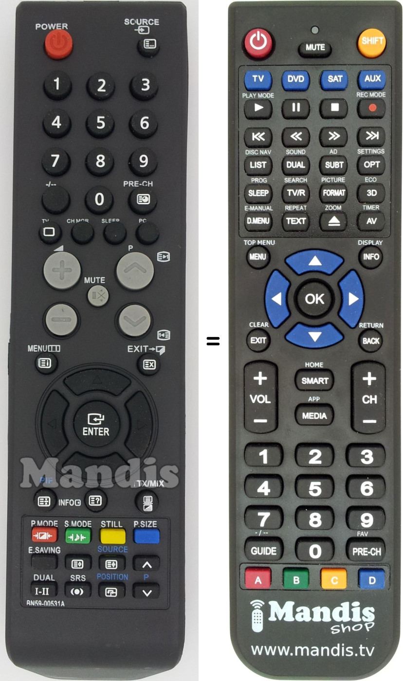This remote control fully replaces your BN5900531A and offers all the functions of the original.