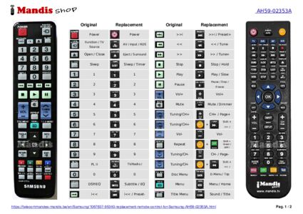 This remote control fully replaces your AH59-02353A and offers all the functions of the original.