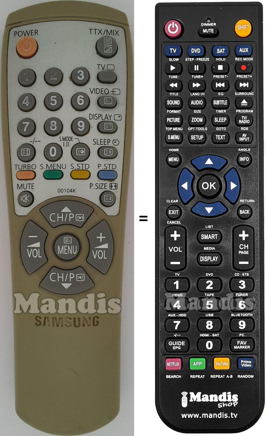 This remote control fully replaces your TM59 (AA5900104K) and offers all the functions of the original.