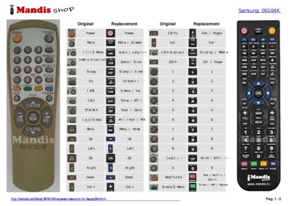 A document is included to help you use the new remote control easily, showing the button correspondence.