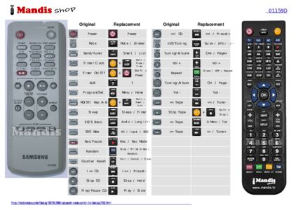 Below, we will show you the correspondence between each button on the original remote control and the button that performs the same function on the replacement remote control. In some cases, you may need to press the SHIFT key before pressing another button to perform certain actions. These additional functions are often not widely used and are included to facilitate understanding of the replacement remote control, or because the original remote control has more buttons than its equivalent.