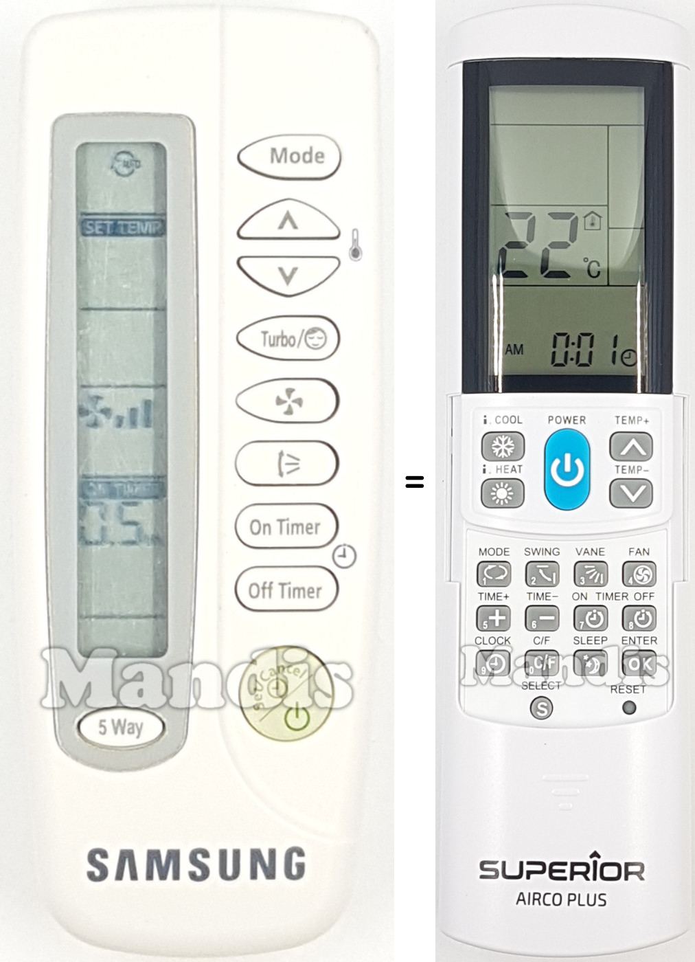 My LG air-conditioner's remote died and need replacement. AircoPlus did the job. I should point out that the code match did not correspond according to manufacturer's table. Let the auto-search code set up do the work. Also, excellent service by Mandis Remotes with a well-protected package.