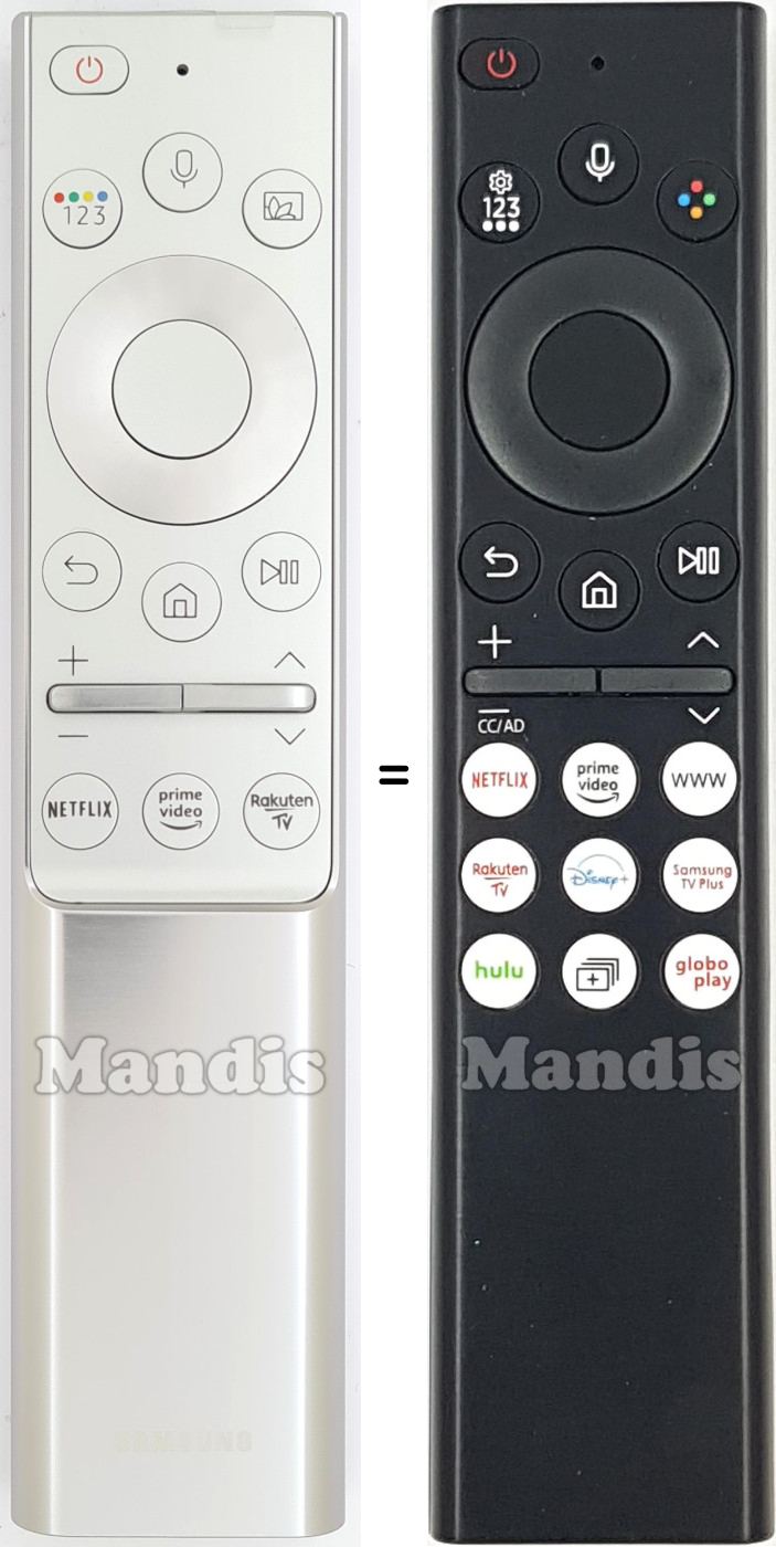 Modernize your Samsung Smart TV with this elegant and functional remote control. It offers complete control and comfort thanks to its voice technology and ergonomic design. It works perfectly with all Samsung TVs with Bluetooth, ensuring a reliable and powerful connection. Featuring direct access buttons for your favorite apps like Netflix and Prime Video.