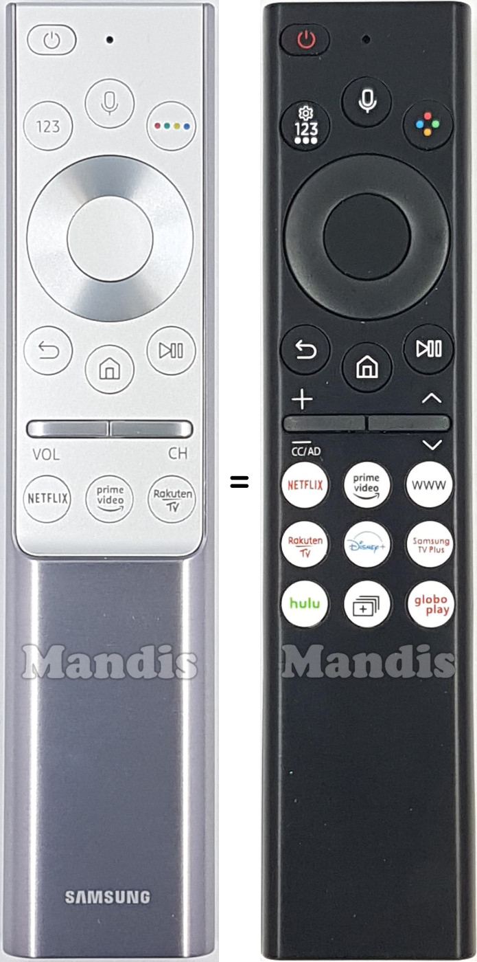 Modernize your Samsung Smart TV with this elegant and functional remote control. It offers complete control and comfort thanks to its voice technology and ergonomic design. It works perfectly with all Samsung TVs with Bluetooth, ensuring a reliable and powerful connection. Featuring direct access buttons for your favorite apps like Netflix and Prime Video.