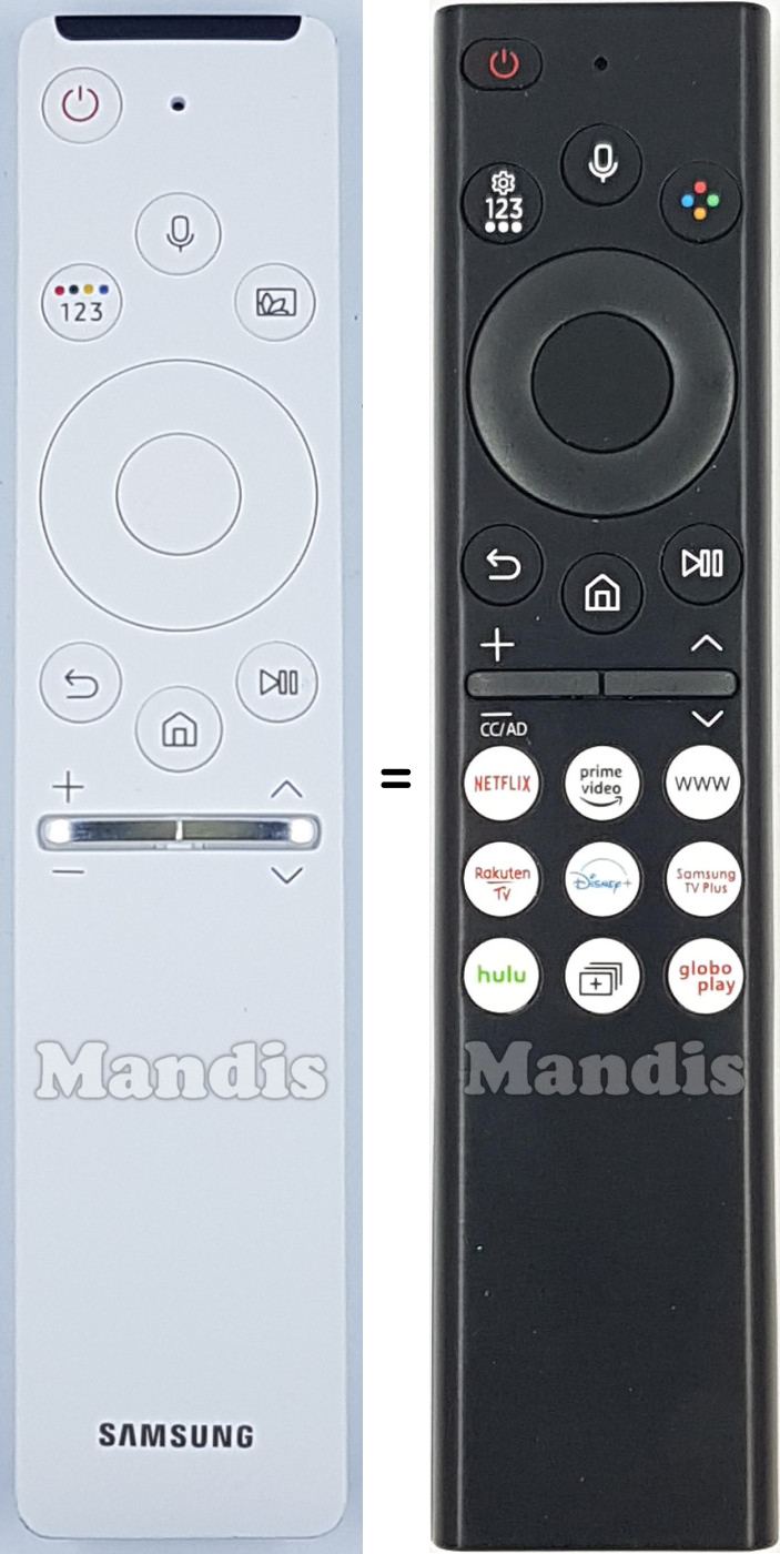 Modernize your Samsung Smart TV with this elegant and functional remote control. It offers complete control and comfort thanks to its voice technology and ergonomic design. It works perfectly with all Samsung TVs with Bluetooth, ensuring a reliable and powerful connection. Featuring direct access buttons for your favorite apps like Netflix and Prime Video.