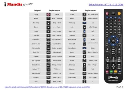 Remote control for SCHAUB LORENZ LT22-111DDW