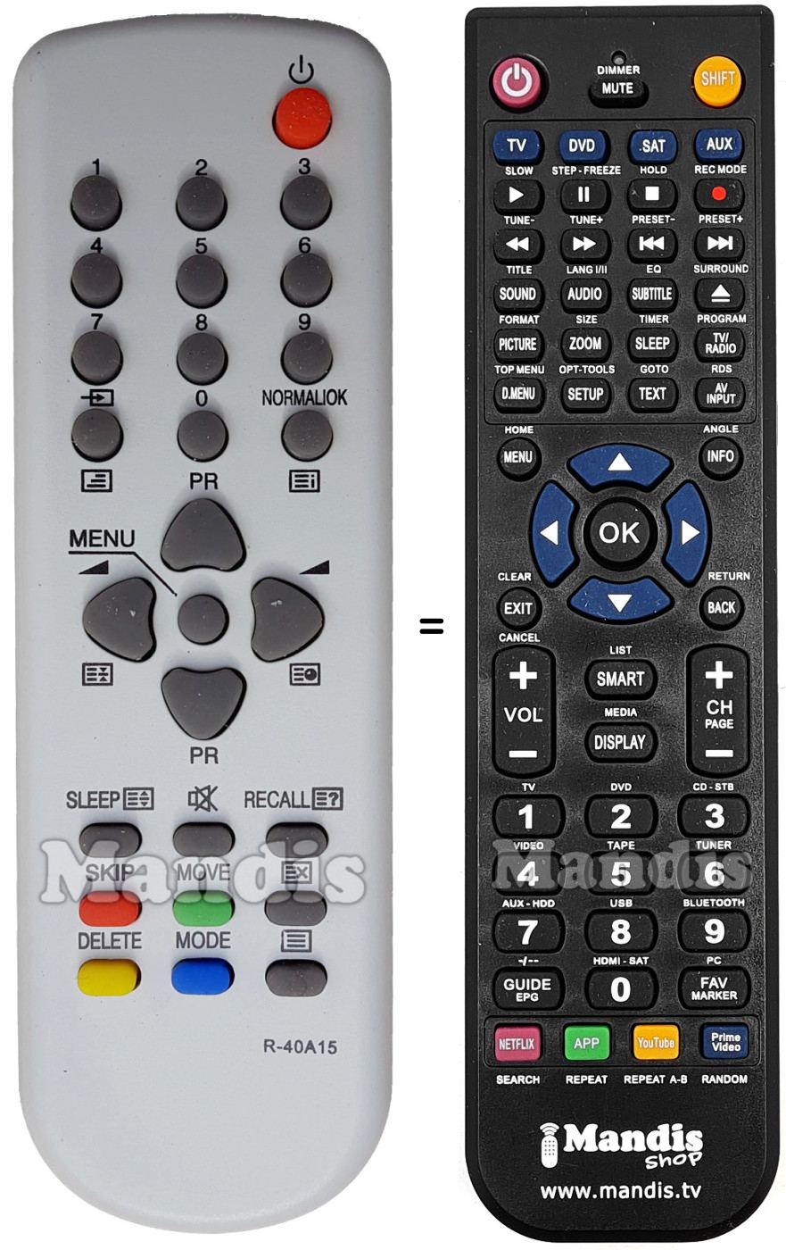 This remote control fully replaces your R-40A15 (48B5748A0801) and offers all the functions of the original.