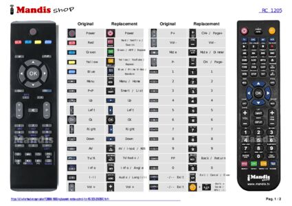 Below, we will show you the correspondence between each button on the original remote control and the button that performs the same function on the replacement remote control. In some cases, you may need to press the SHIFT key before pressing another button to perform certain actions. These additional functions are often not widely used and are included to facilitate understanding of the replacement remote control, or because the original remote control has more buttons than its equivalent.