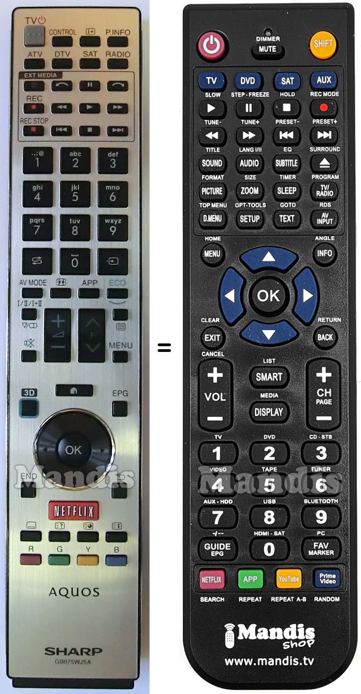 This remote control fully replaces your GB075WJSA (RRMCGB075WJSA) and offers all the functions of the original.