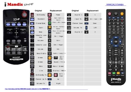 Below, we will show you the correspondence between each button on the original remote control and the button that performs the same function on the replacement remote control. In some cases, you may need to press the SHIFT key before pressing another button to perform certain actions. These additional functions are often not widely used and are included to facilitate understanding of the replacement remote control, or because the original remote control has more buttons than its equivalent.