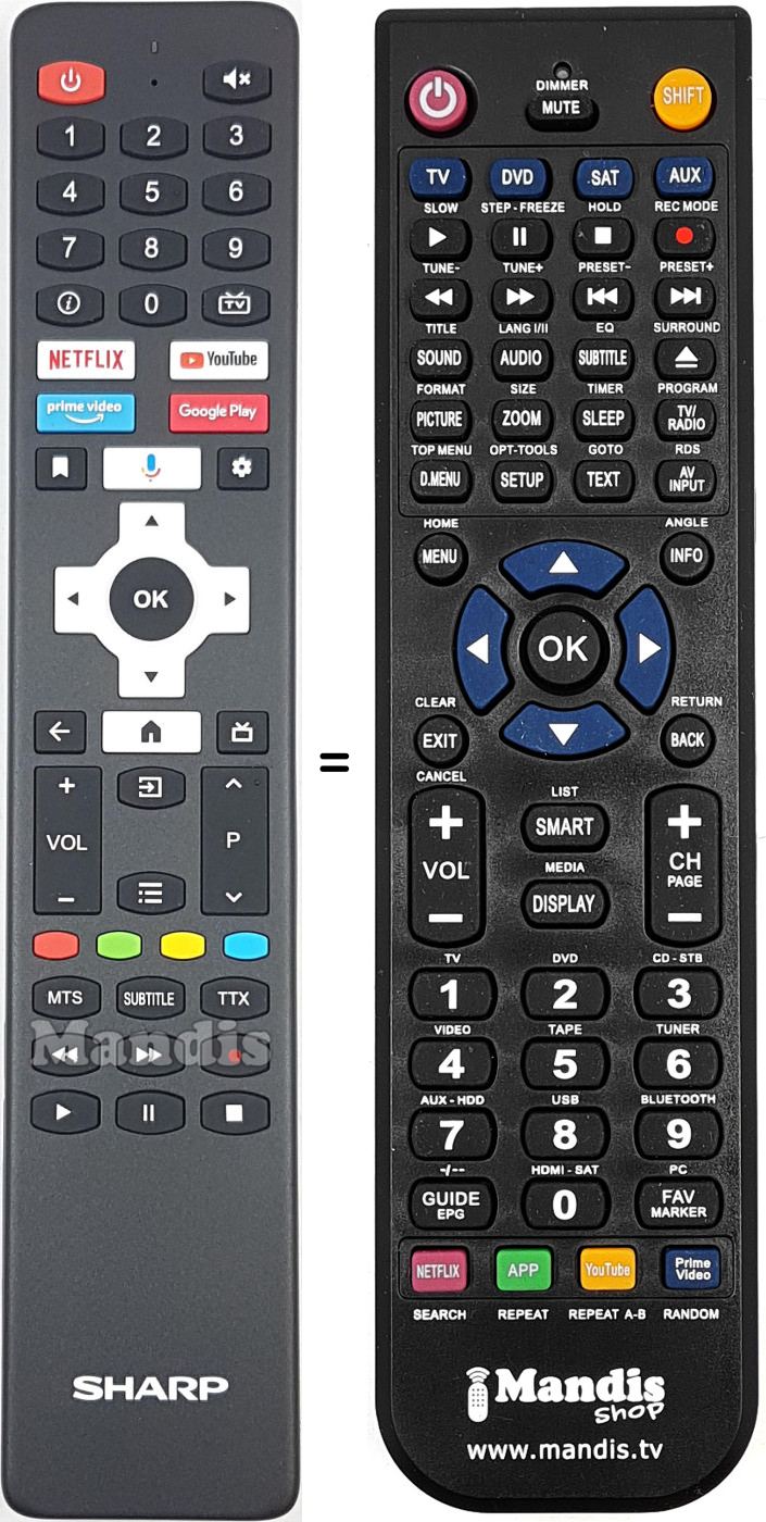 replacement remote control RC-ES02-EN27 used for televisions for the brand Sharp.
