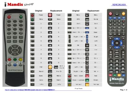Below, we will show you the correspondence between each button on the original remote control and the button that performs the same function on the replacement remote control. In some cases, you may need to press the SHIFT key before pressing another button to perform certain actions. These additional functions are often not widely used and are included to facilitate understanding of the replacement remote control, or because the original remote control has more buttons than its equivalent.