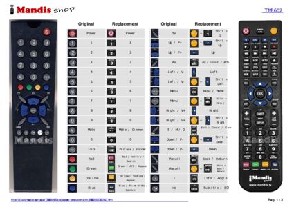 Below, we will show you the correspondence between each button on the original remote control and the button that performs the same function on the replacement remote control. In some cases, you may need to press the SHIFT key before pressing another button to perform certain actions. These additional functions are often not widely used and are included to facilitate understanding of the replacement remote control, or because the original remote control has more buttons than its equivalent.